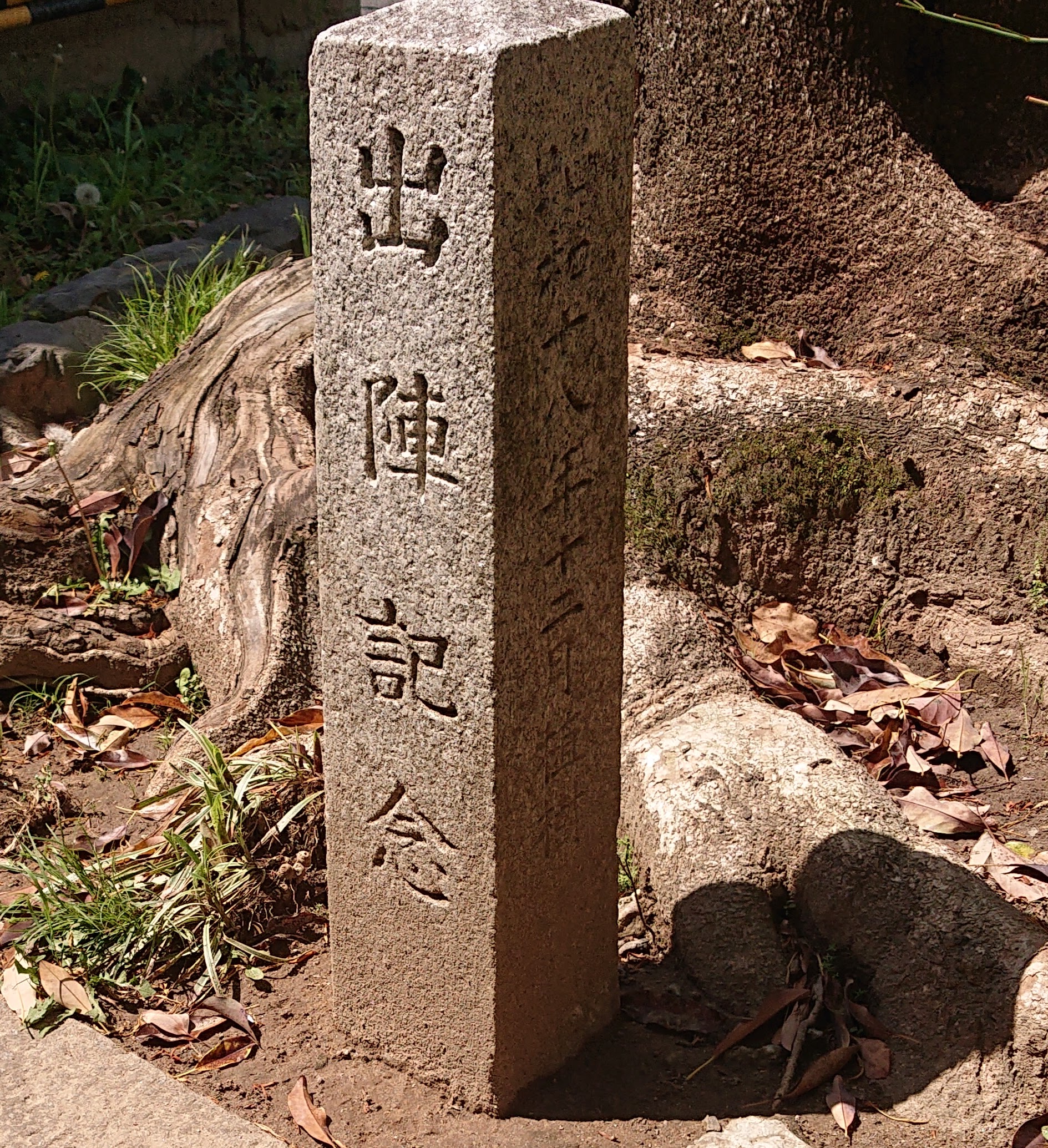 今出川御門を抜けて相国寺通を歩いていると、左手に出陣記念と記された石碑を見つけました。