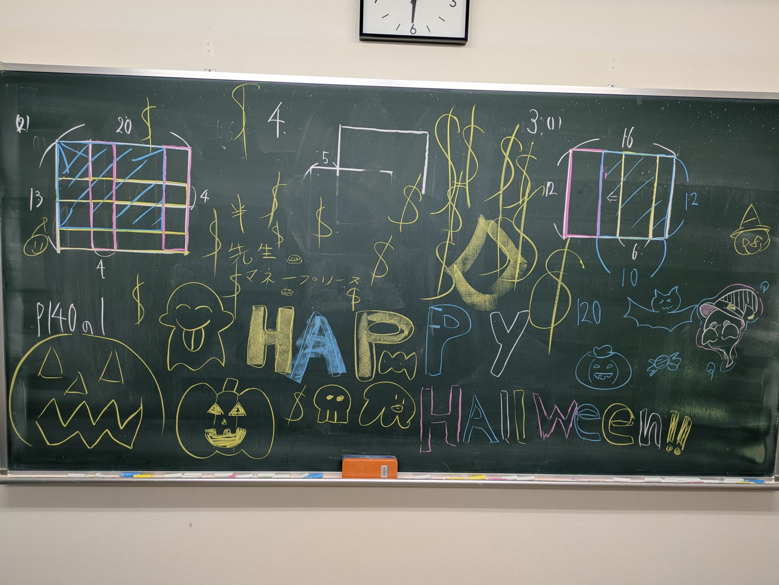 HOME 指導方針 小学部カリキュラム 中学部カリキュラム 教室・講師紹介 生徒・保護者の声 費用 体験授業 よくあるご質問 お問い合わせ ブログ 大山崎進学教室〒618-0071京都府乙訓郡大山崎町大山崎鏡田24-14TEL:075-957-5556 Home > ブログ > Happy Halloween ブログ Happy Halloween 本日の小6クラス算数の授業前、直前にオンライン授業の申し込みが入りバタバタしている私を見て、 「少しだけ黒板に落書きしていい?」 「じゃあ、5分だけな」 『よし、オンライン授業の案内メール、送信完了!!』 『さあ、いざ授業へ!!』と黒板に向かうと・・・・・ Hppy Halloween 素敵な夜をお過ごしください。 カテゴリー お知らせ 塾長日記 塾長紹介 高校受験 投稿ナビゲーション « 授業動画を無料で配信します冬期講習会の受講生を募集しています »